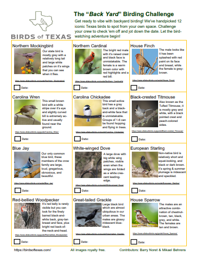 We’ve created the below PDF file to help start your back yard birding adventure! Open PDF Here